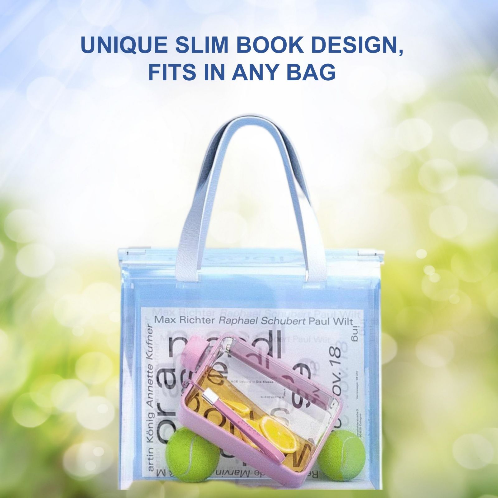 LIGHTWEIGHT FASHIONABLE DESIGN:Unique slim book design to fit in any bag, such as briefcase, purse, lunchbox or sports bag and even within your pocket. This water bottle takes up minimal space and creates no bulge or sagging. You will Love it!